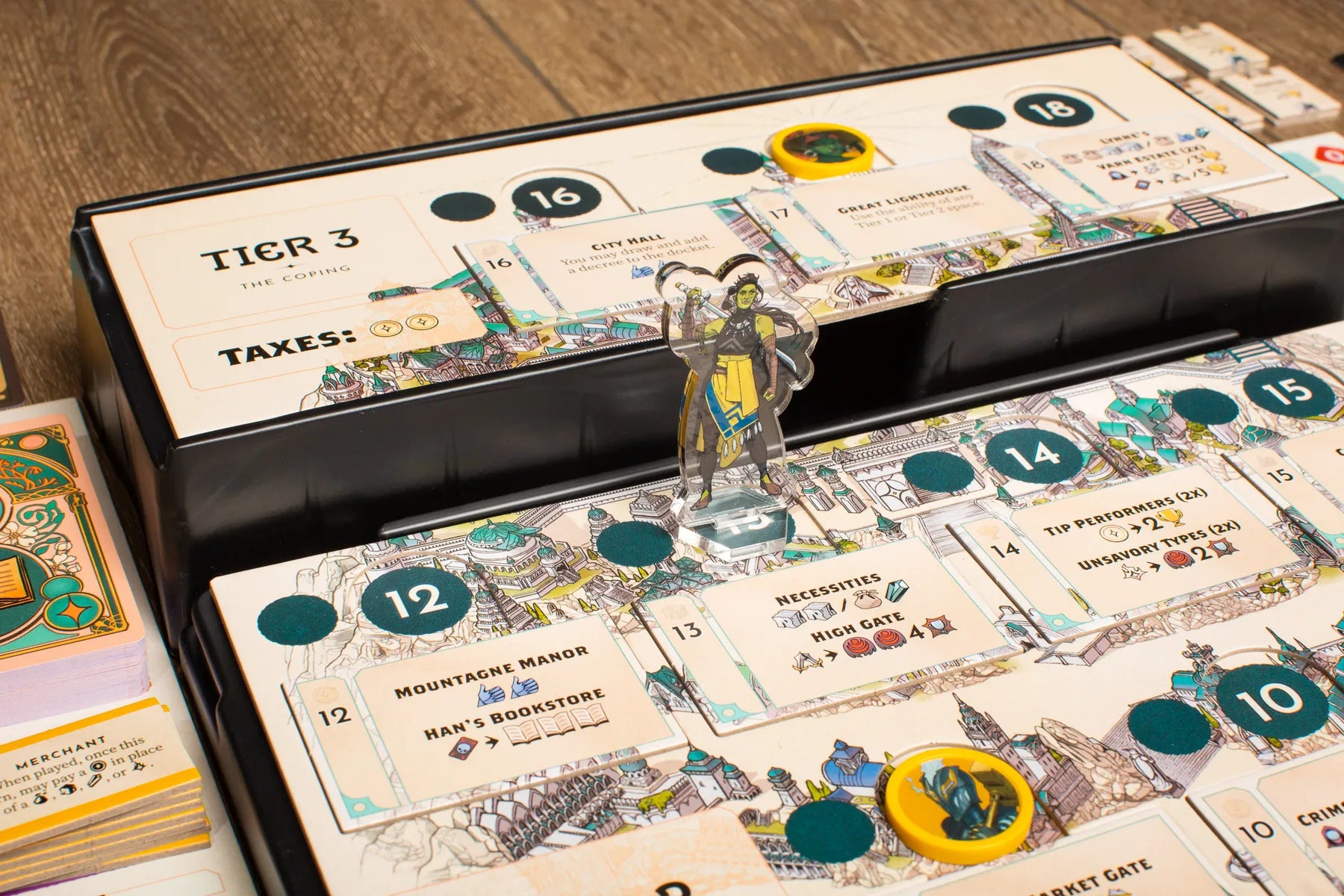 Take turns sending your workers to collect resources, upgrade buildings, and construct new Kinfire lighthouses in the surrounding area, while the Cult of Altan interferes with your plans and undermines your authority. You'll vote on important city policies, arrest cultists, and dispatch your Seeker to thwart threats looming over the final bastion of civilization, the great city of Din'Lux.